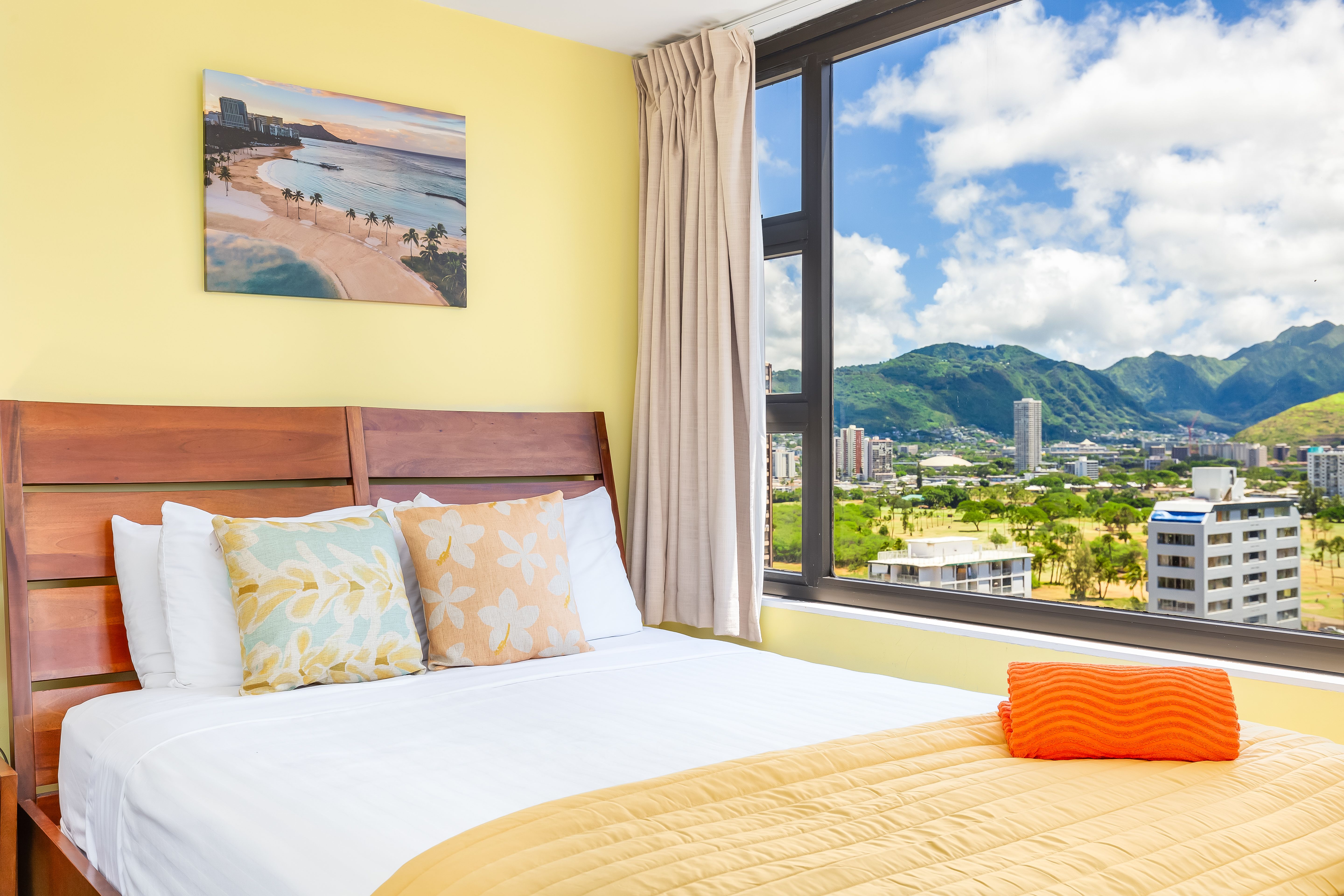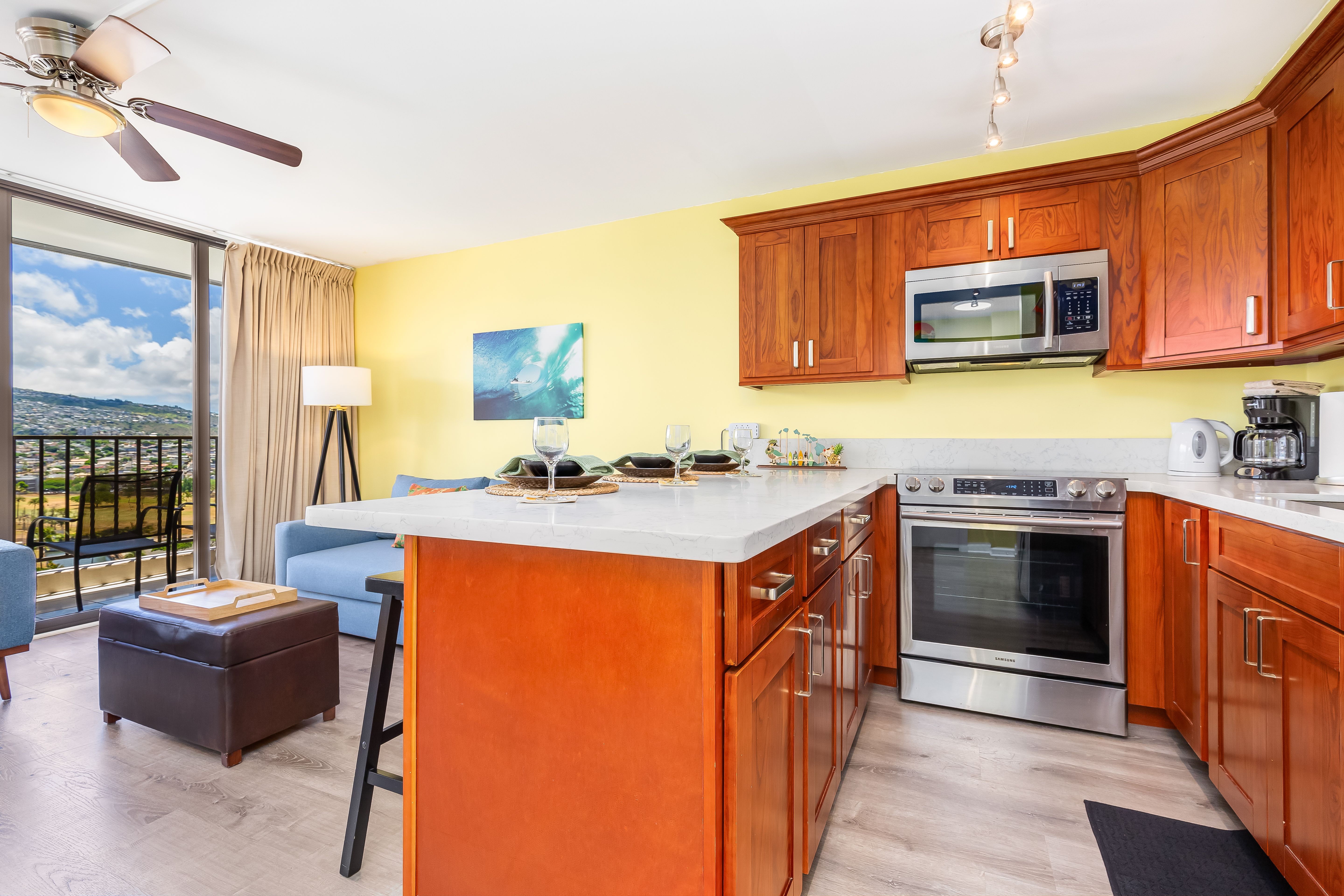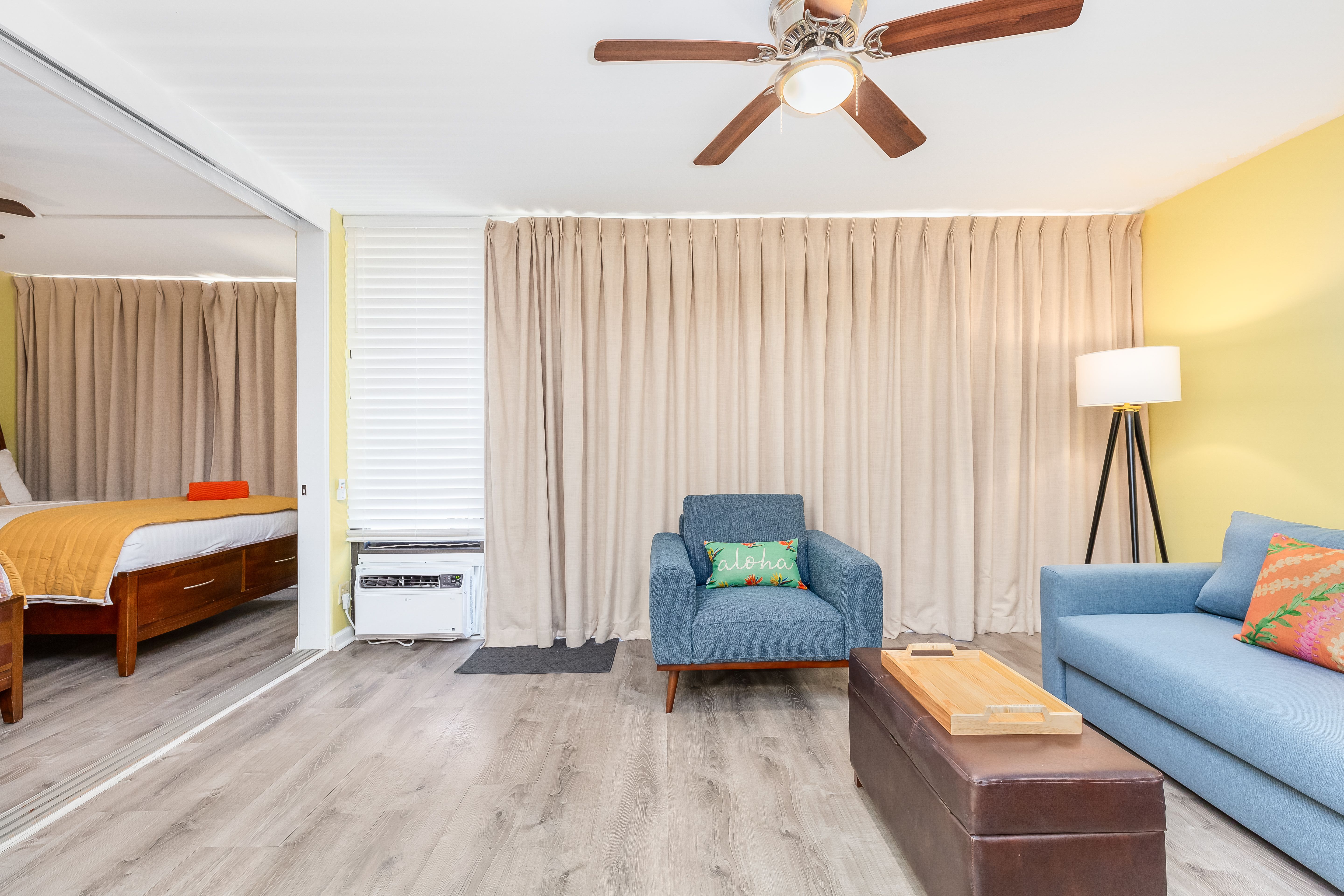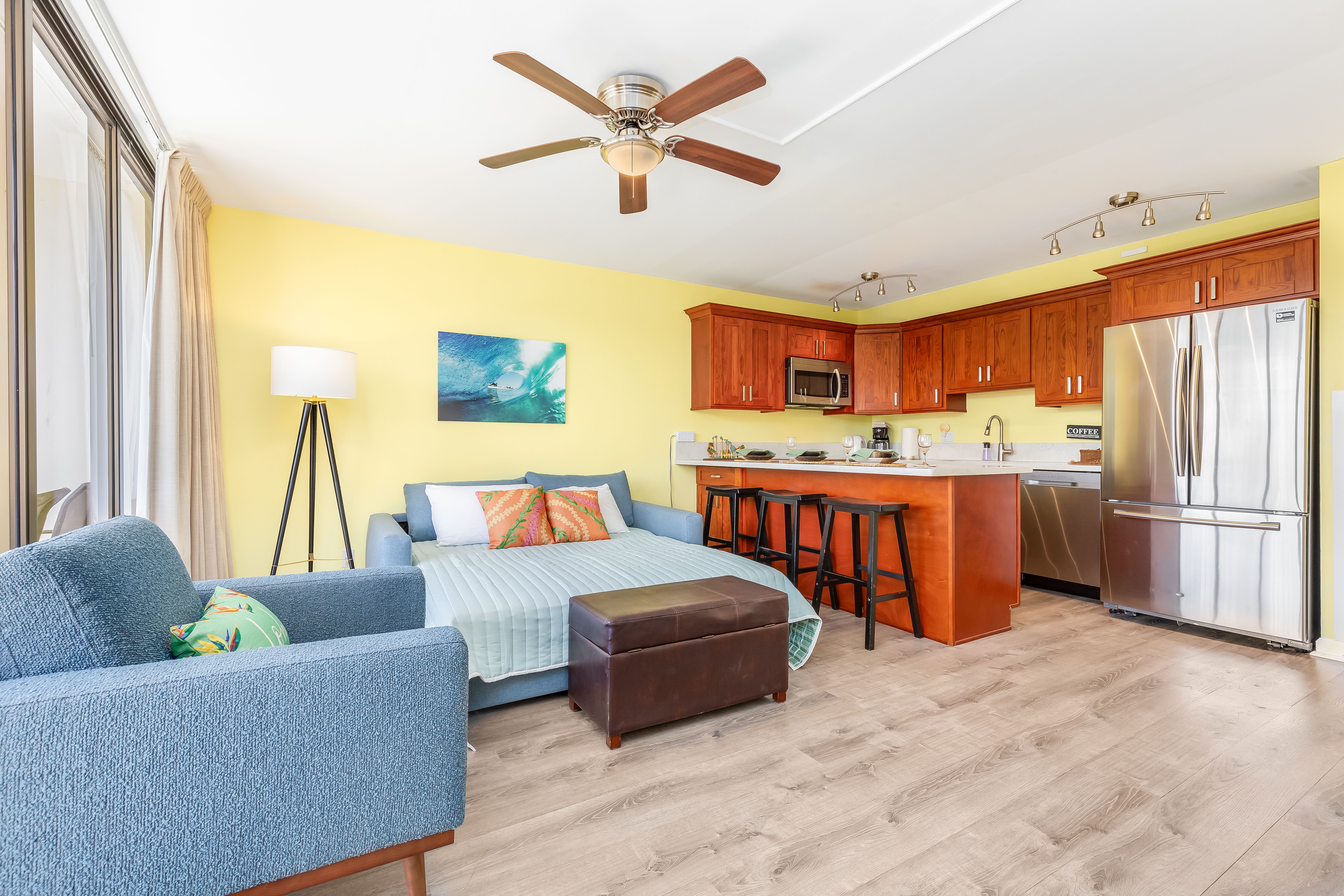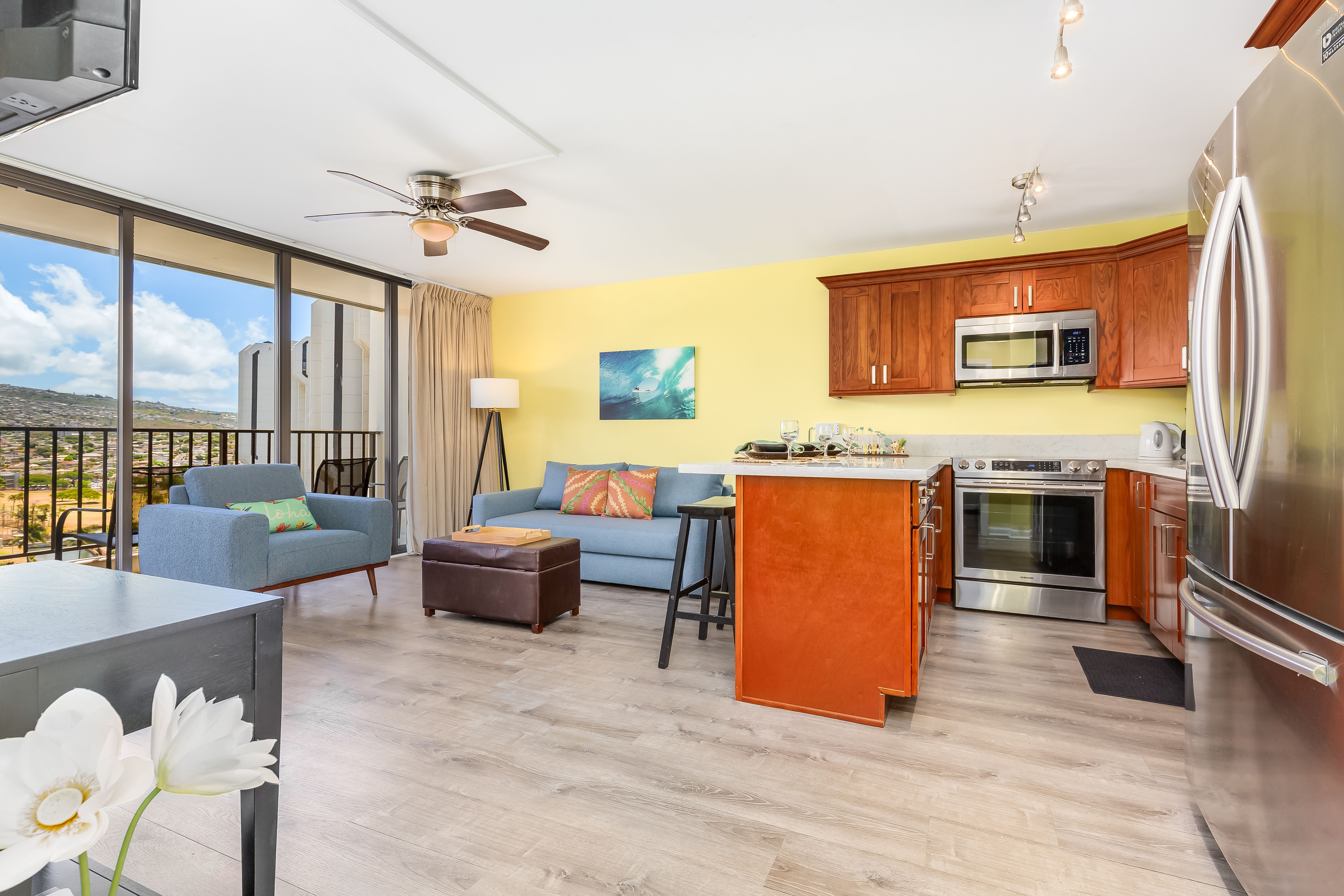 Cozy living room with Hawaiian decor