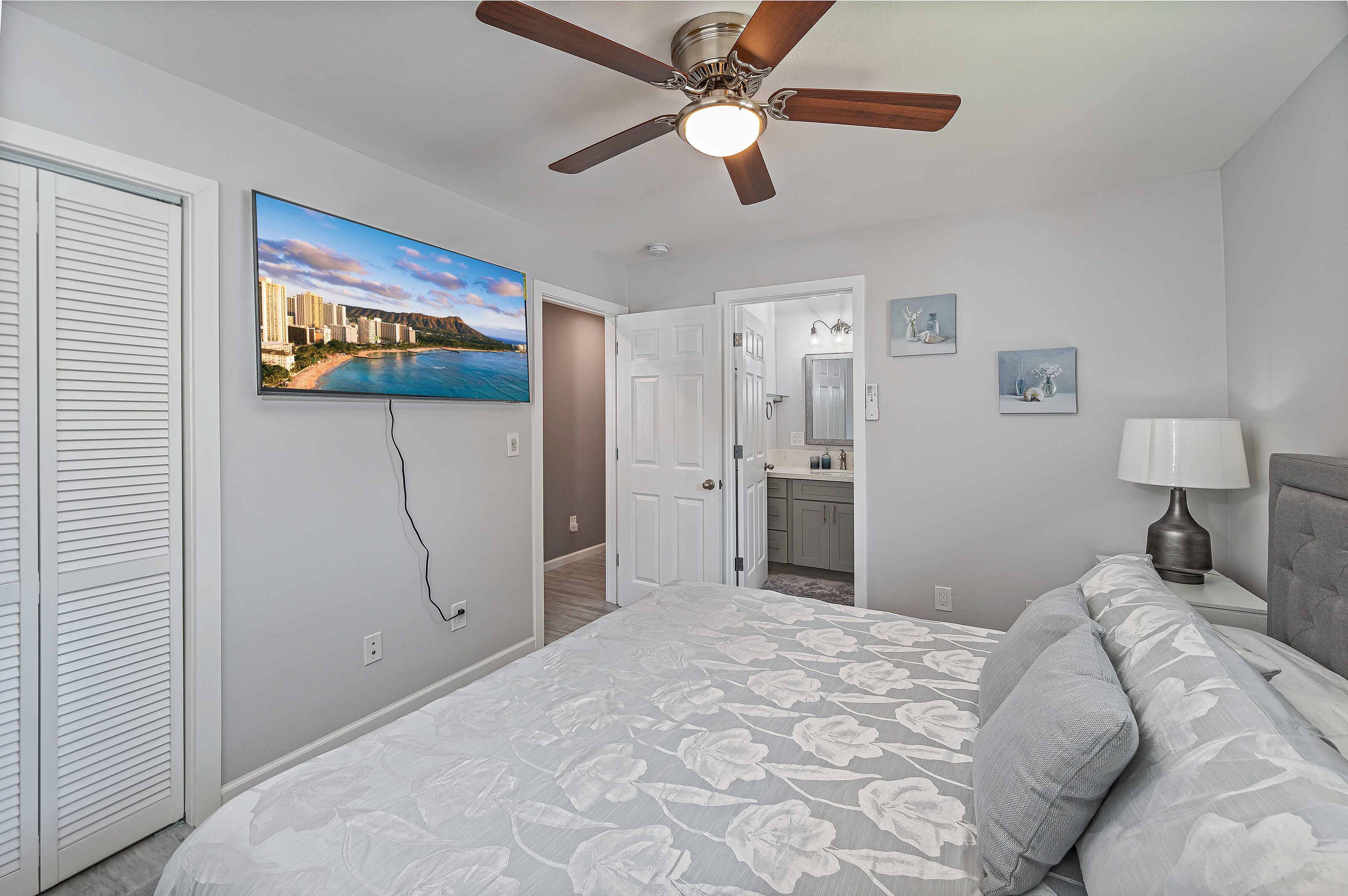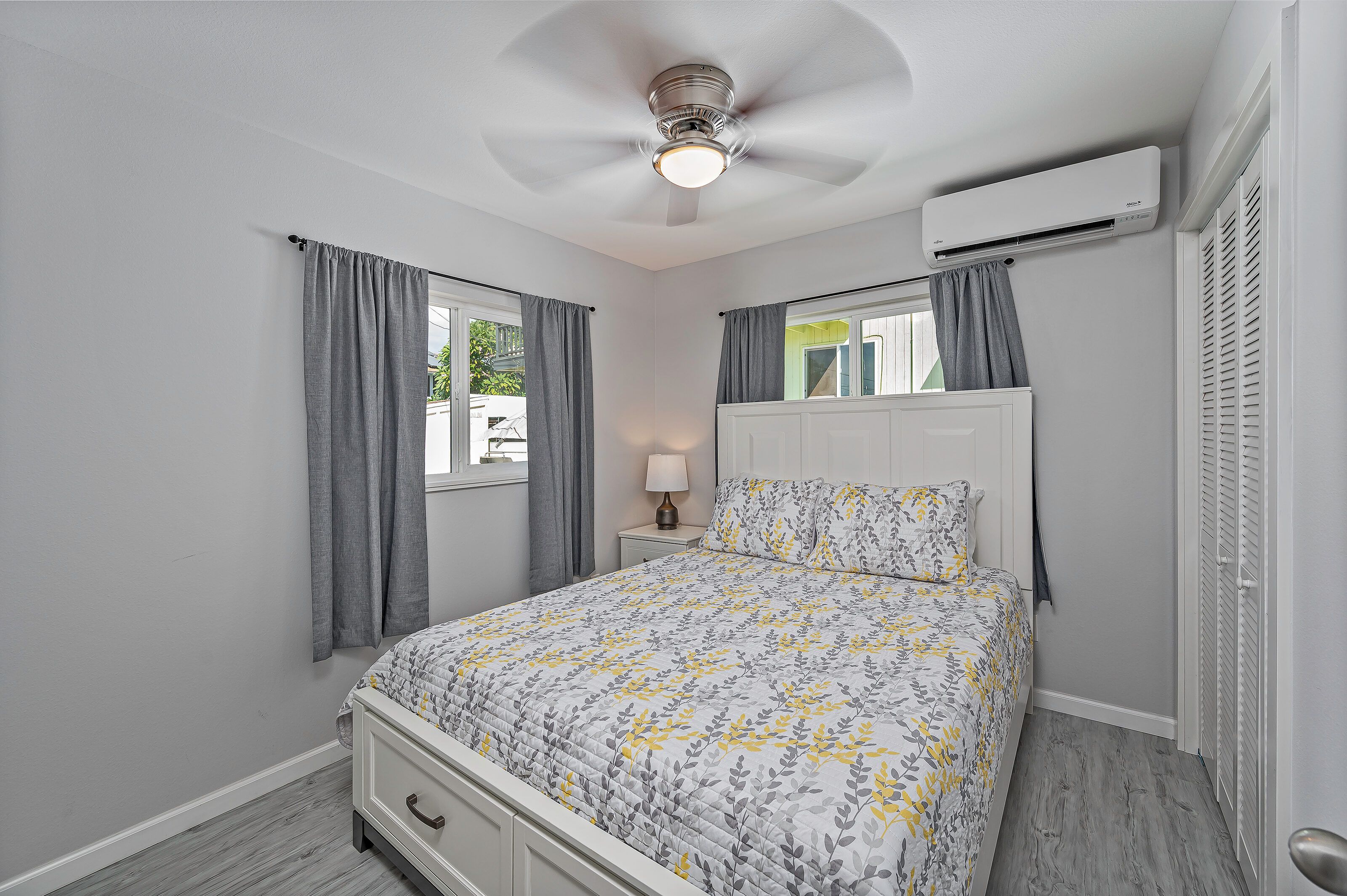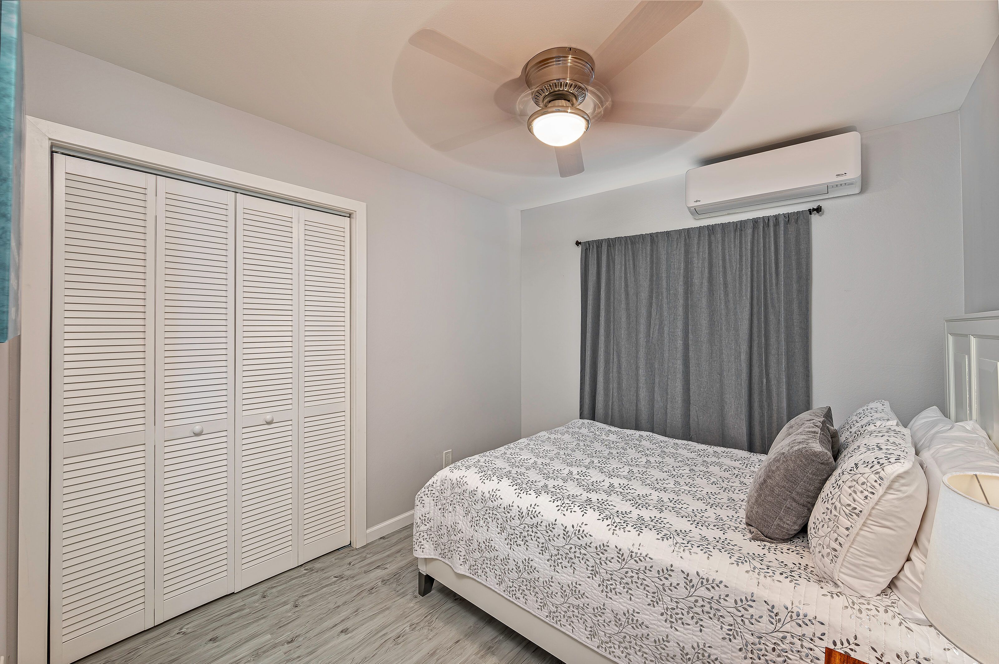Guest bedroom with full bed and large closet space Guest bedroom with full bed and large closet space