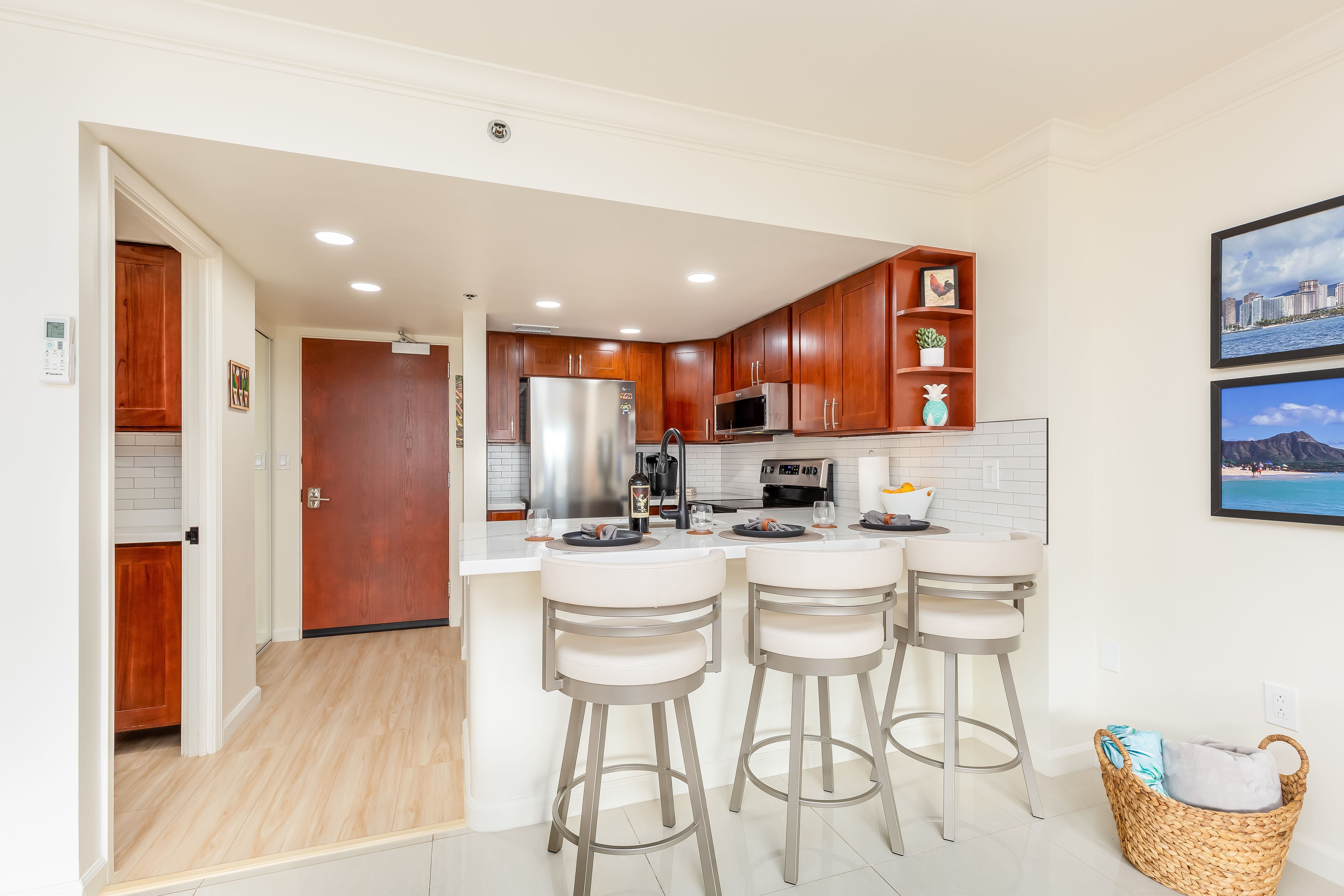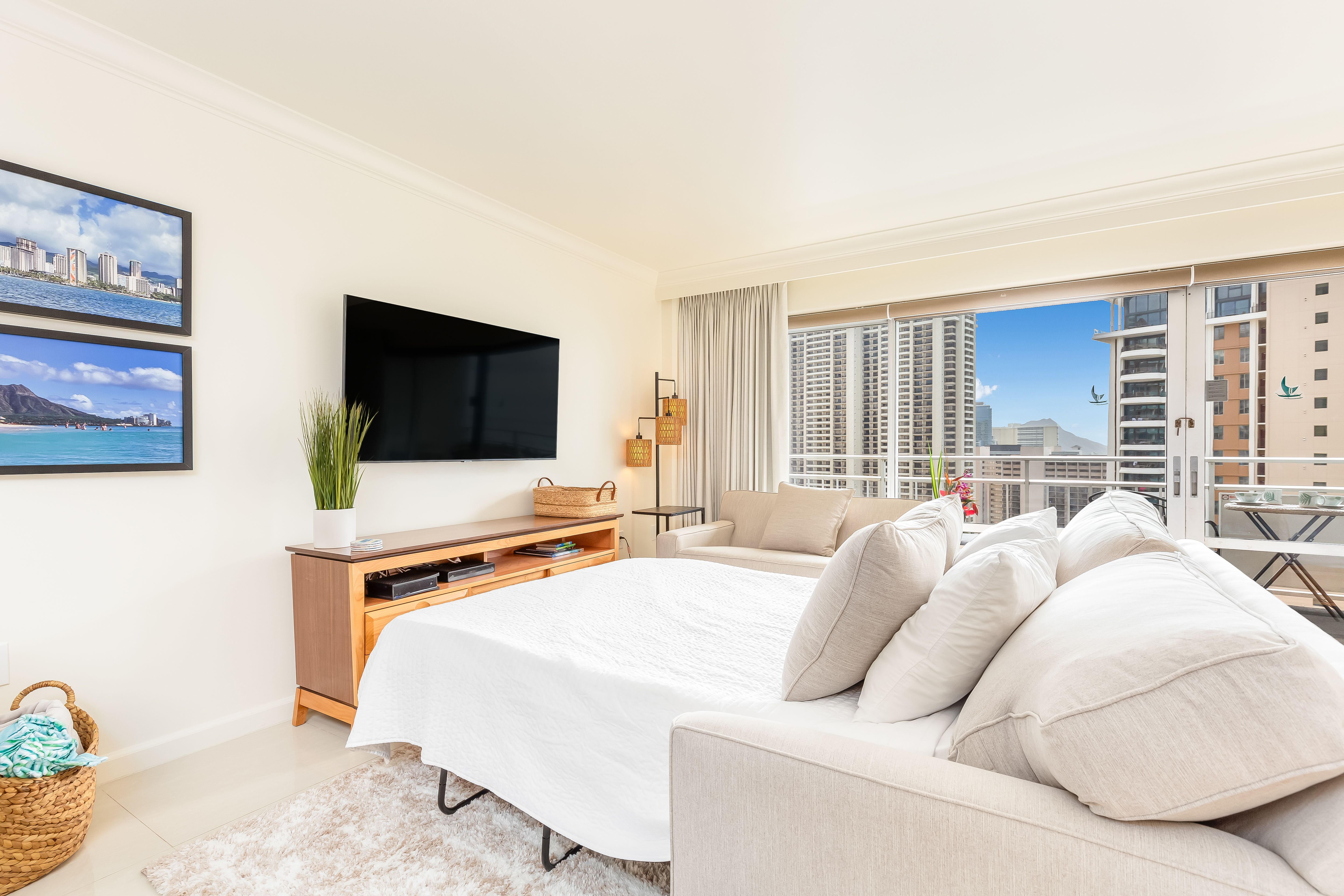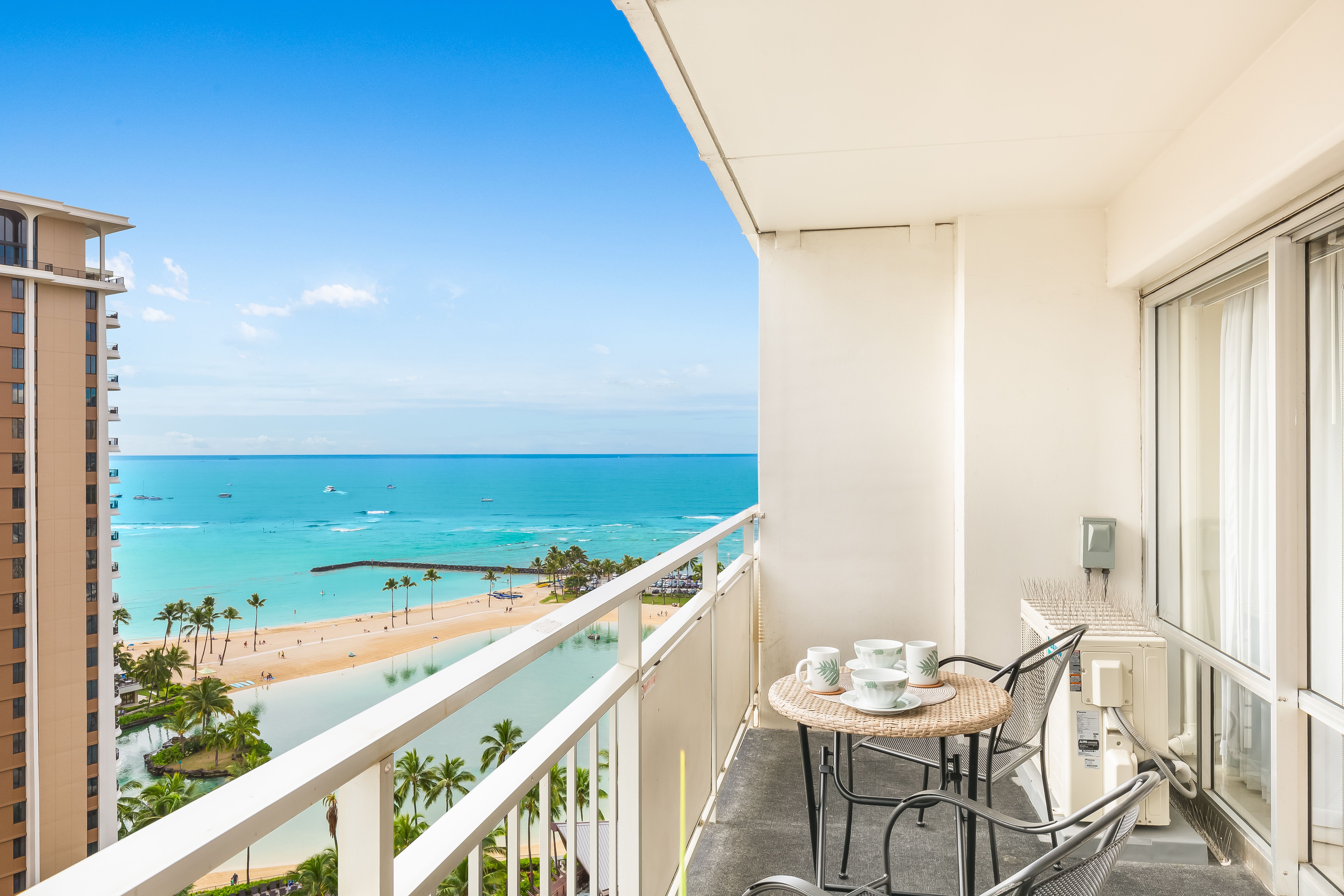 1 BR1 BA4 Guests Ocean view from the balconyLiving room and King size bedFlat screen TVFully equipped kitchenKitchen Island with 3 bar stoolsExteriorEntrance to the condoCozy living roomBathroomOcean view from the balconySofa bed for additional guestsKing bedSplit ACBedroom with a dresserLiving room and kitchenWine and dine at homeBalcony with ocean and city view Beach chairs, Boogie board & CoolerSpectacular view from the 17th floorKitchen with new appliances Ilikai LobbyExteriorExteriorExteriorExteriorExteriorExteriorExteriorExteriorThe lagoon is just steps away! Request infoFeatured Amenities Air Conditioning Wifi Elevator Kitchen Ocean View Shared Pool
