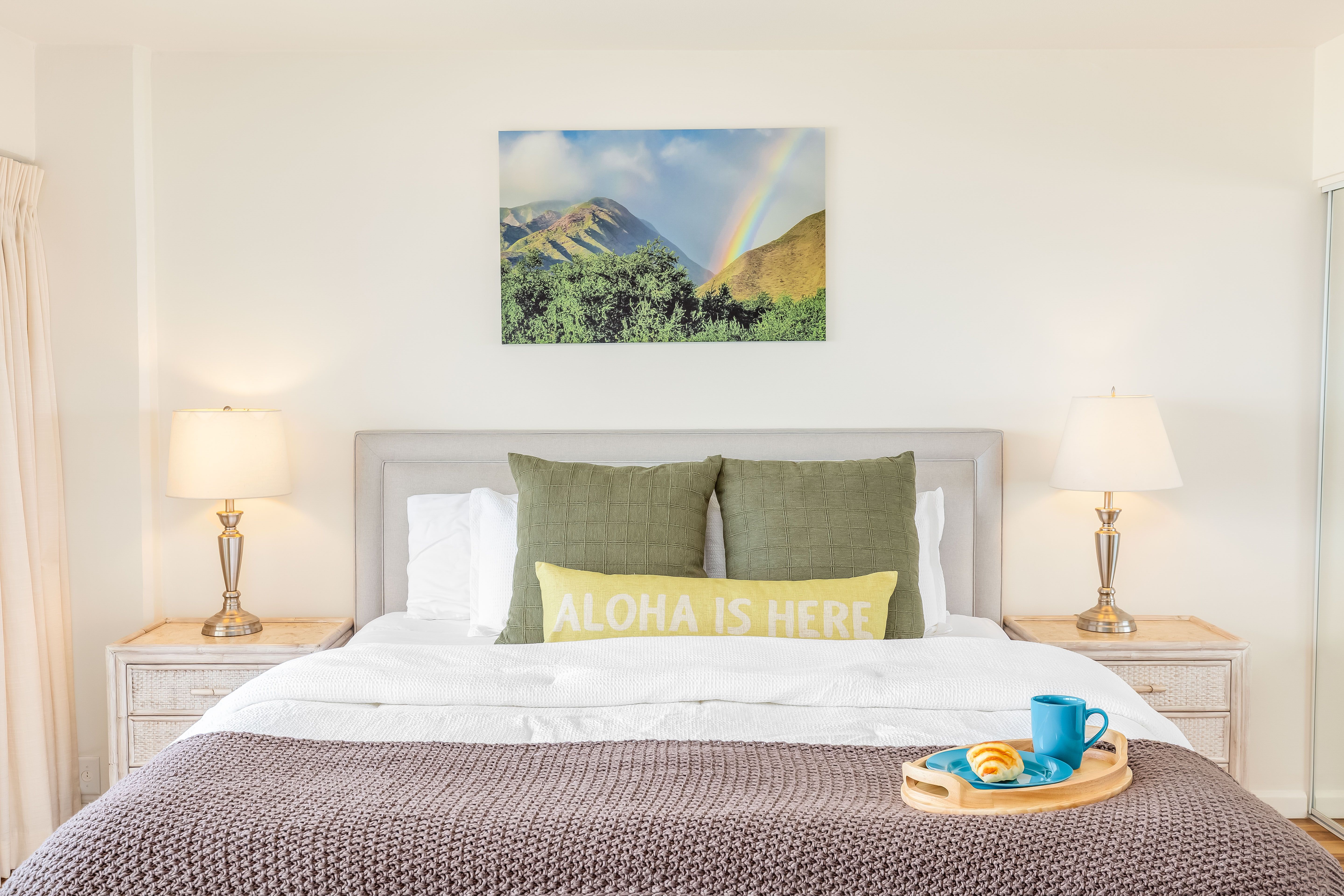 Aloha and thank you for your kind review! We are so glad to hear the condo was beautiful and had everything that you needed, and our team was helpful and the bed was comfortable. We appreciate your feedback about the frying pans and will get new ones so we can provide a better experience moving forward. Mahalo for choosing Ali'i Beach Rentals!