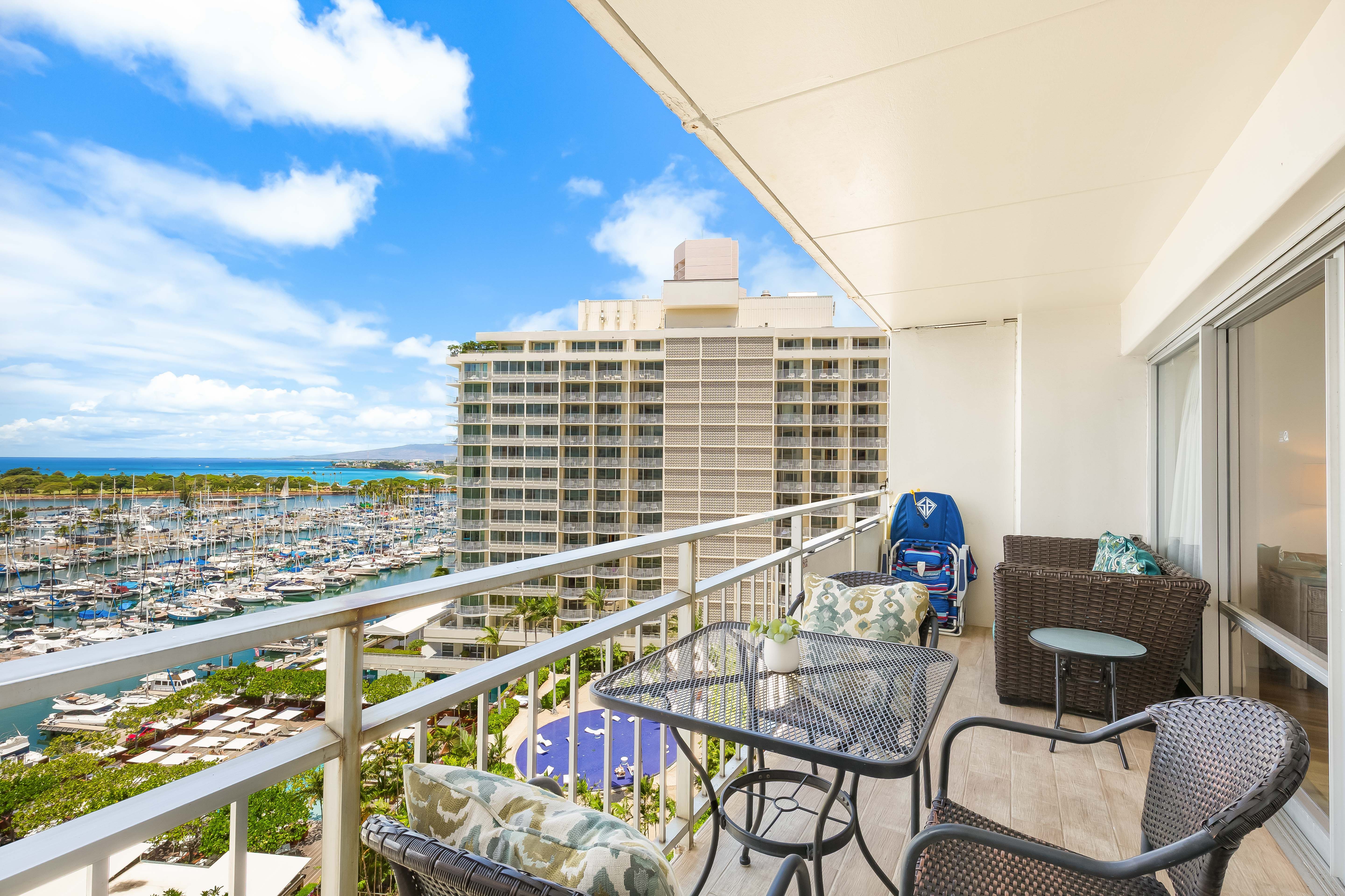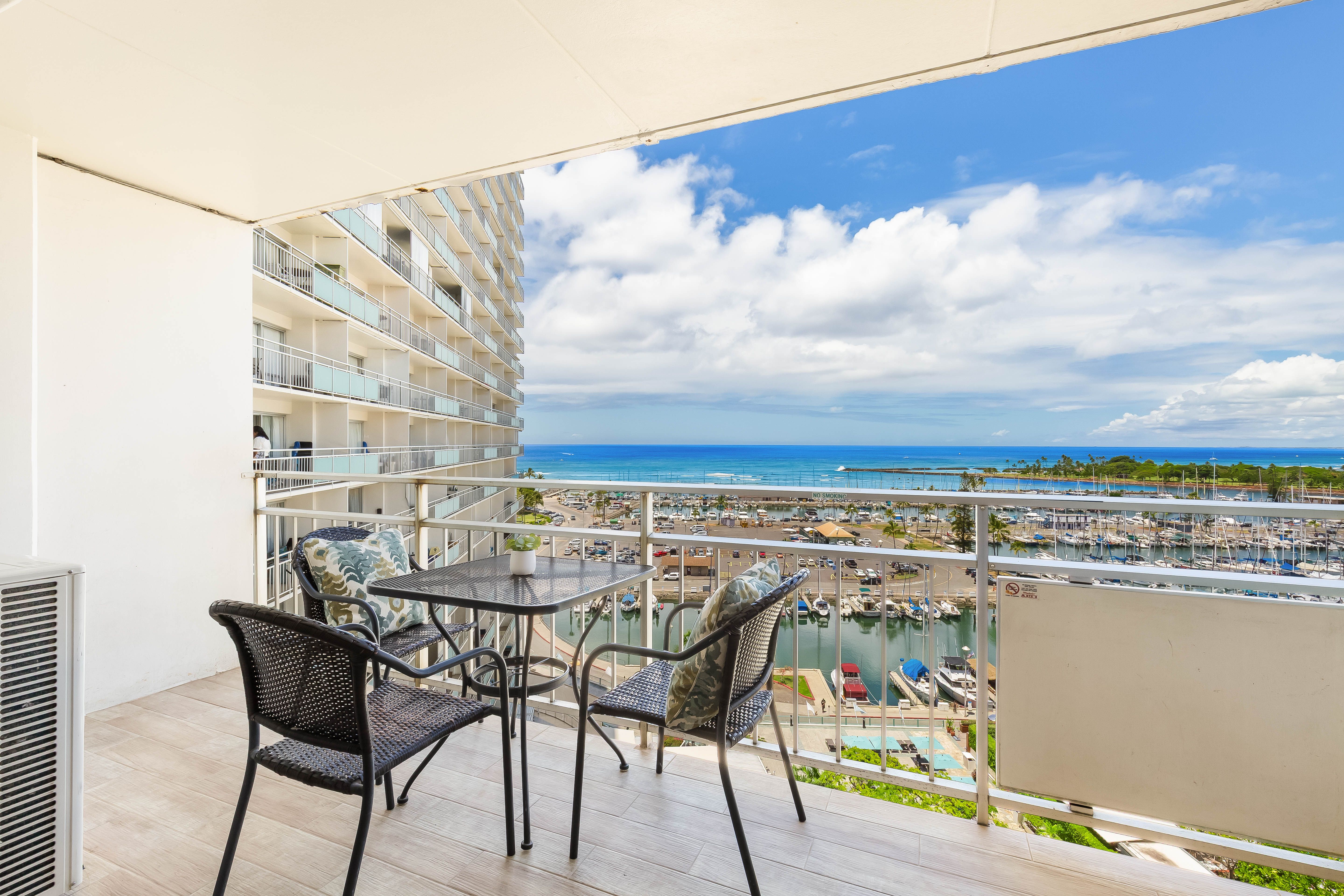 I stay at the Ilikai everyyear - a perfect location. This condo is updated with a nice kitchen and bathroom features a walk in shower. Lanai faces the marina on this side of the building offering spectular views with the down side of hot afternoon sun. This was my first time using Alii Beach Rentals - the experience was very positive.
