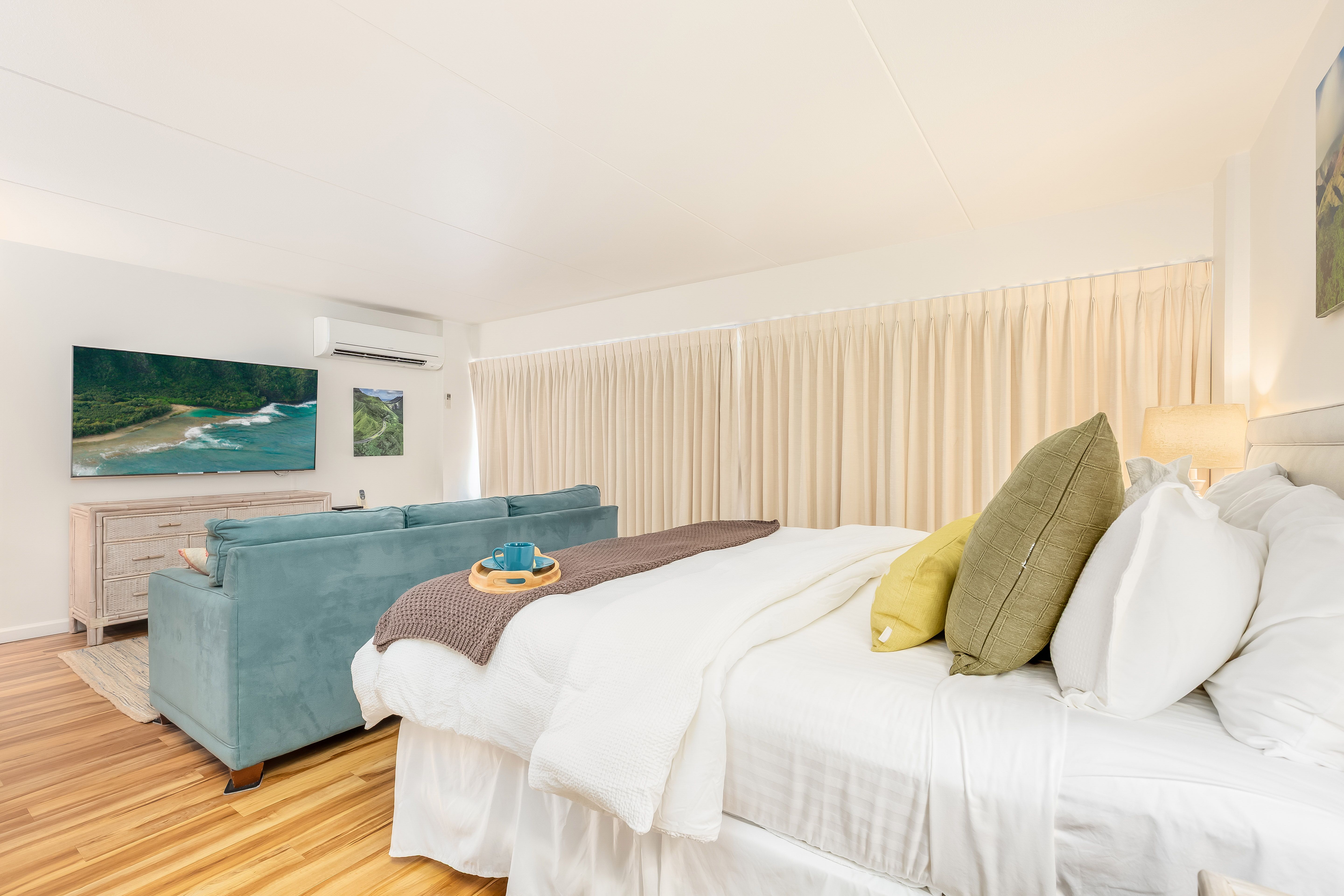 Aloha and thank you for taking the time to leave us a review! We are glad you enjoyed your stay at the condo and it was very clean, renovated, and in a great location – close to the lagoon, just a short walking distance to all of the restaurants and shopping. If you haven't already, please make sure to sign up for our Alii Beach Rentals loyalty rewards program so you can earn points every time you stay with us and redeem them next time you stay with us for ABC gift cards, dining at Duke's gift certificates, or a free departure cleaning, or a free late check out, and more! We hope you stay with us again soon. Mahalo!