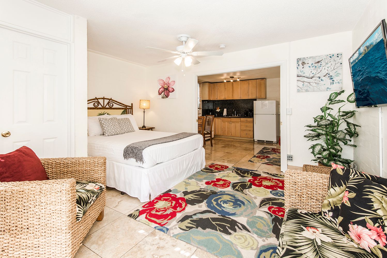Hawaiian Decor Condo with Ceiling Fan and Large Flat Screen TV