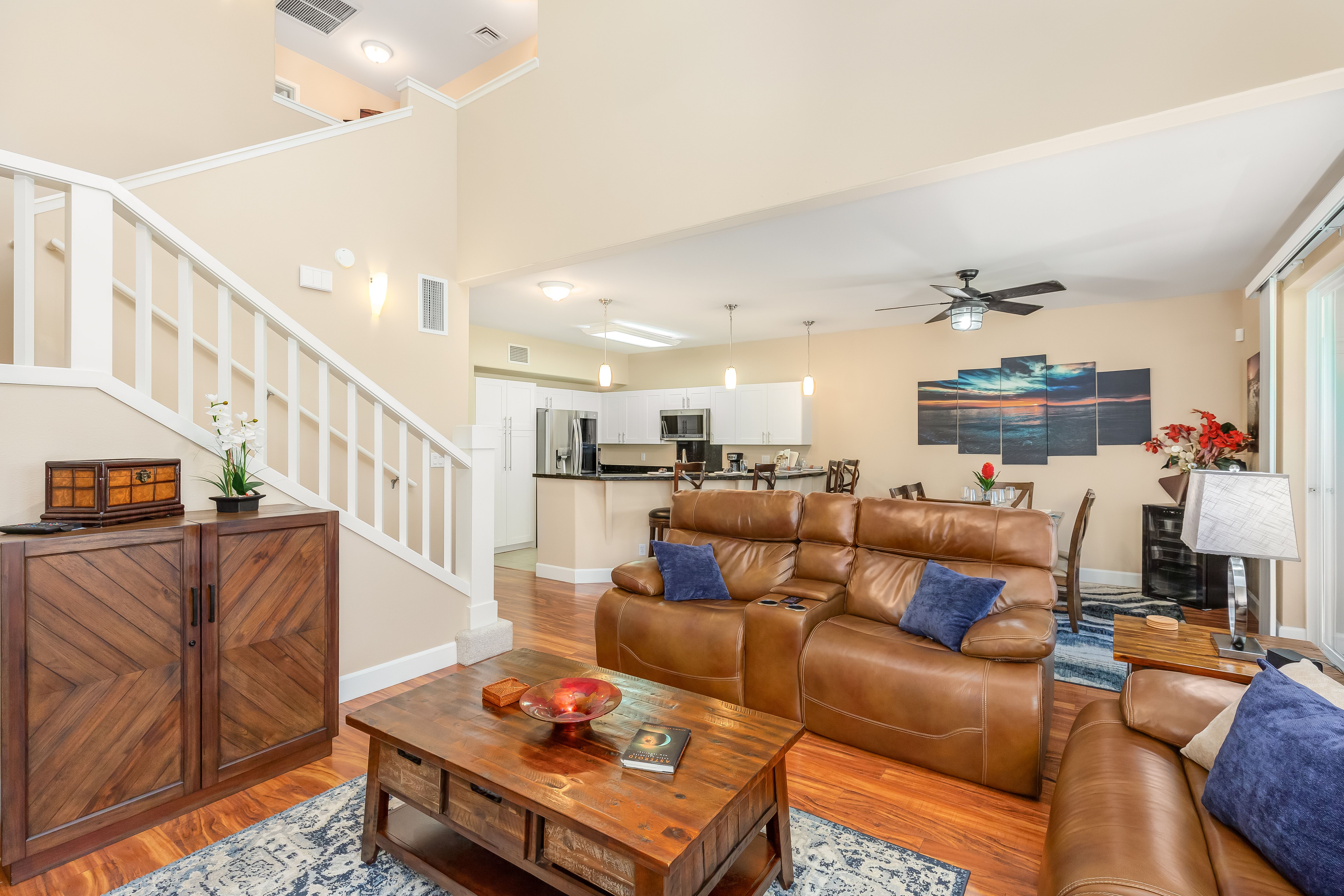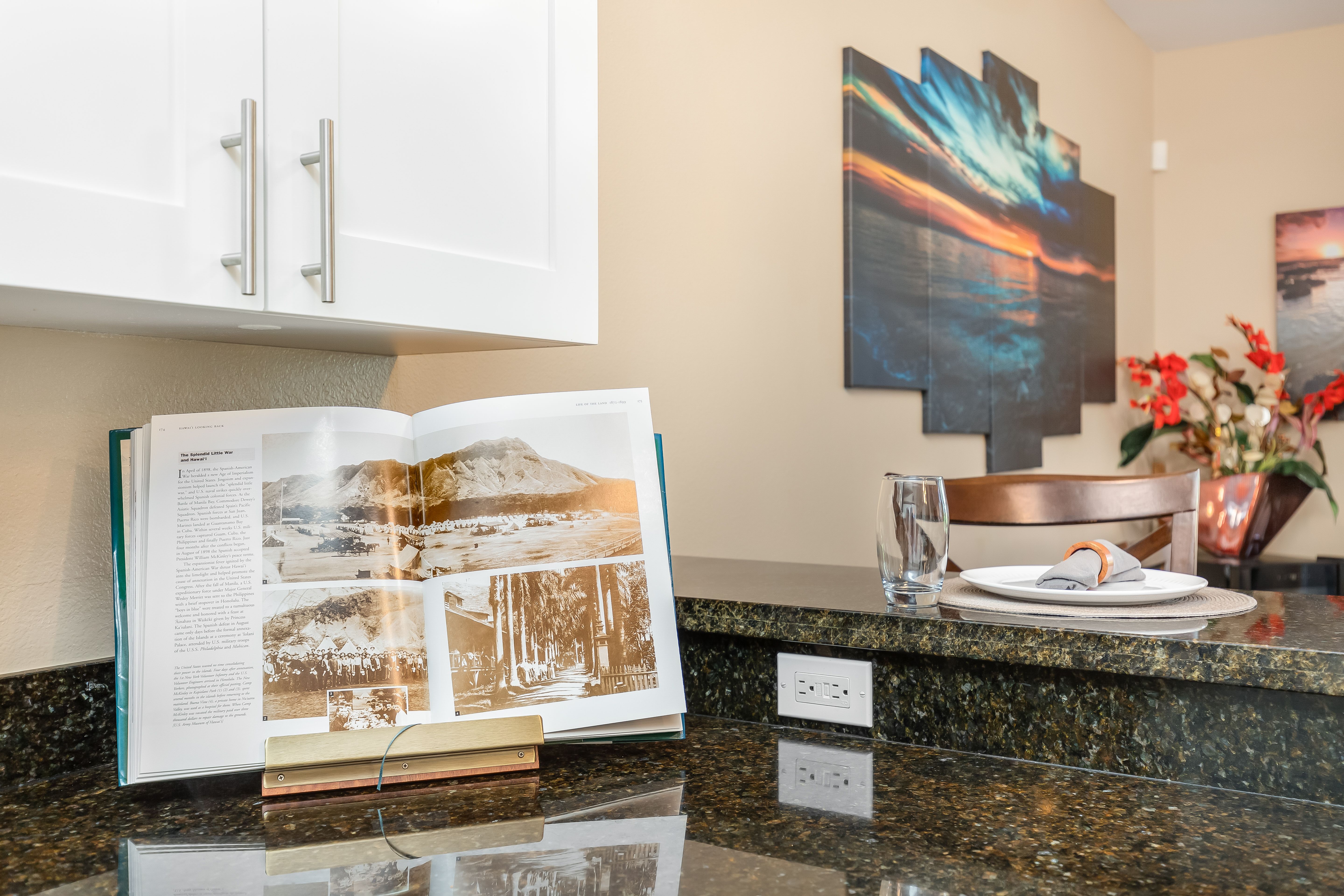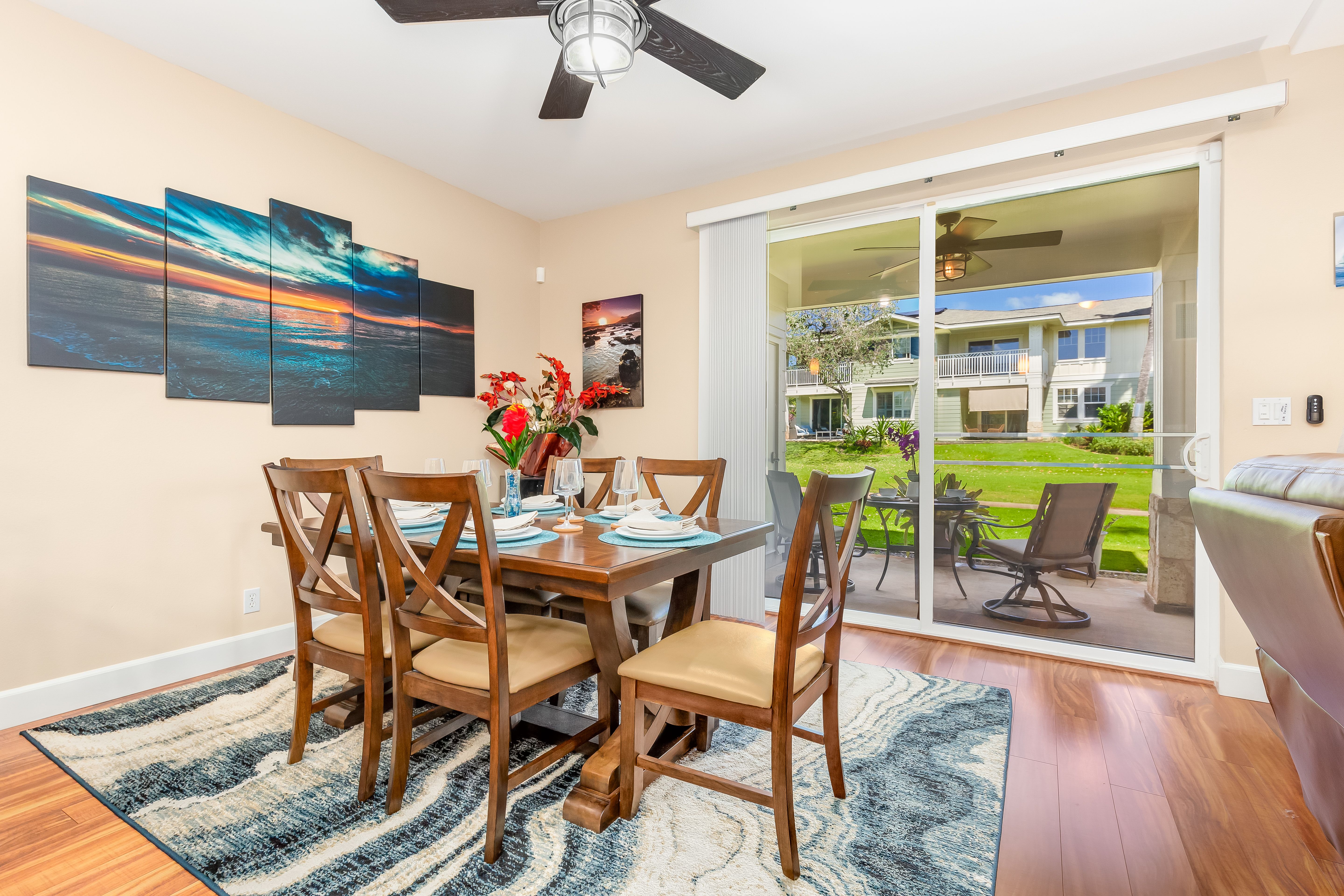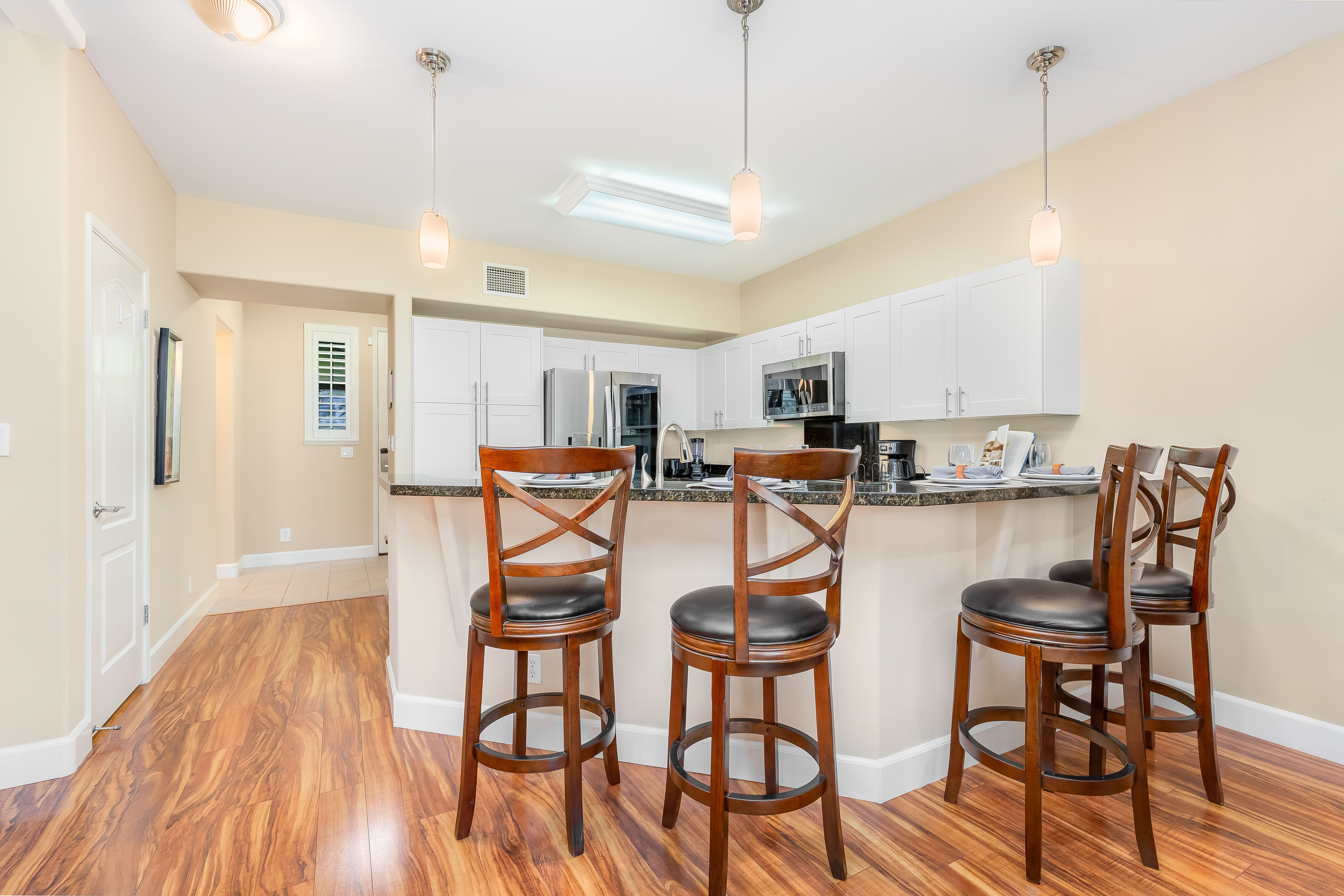 Enjoying a cozy dinner at the dining table along the kitchen isl