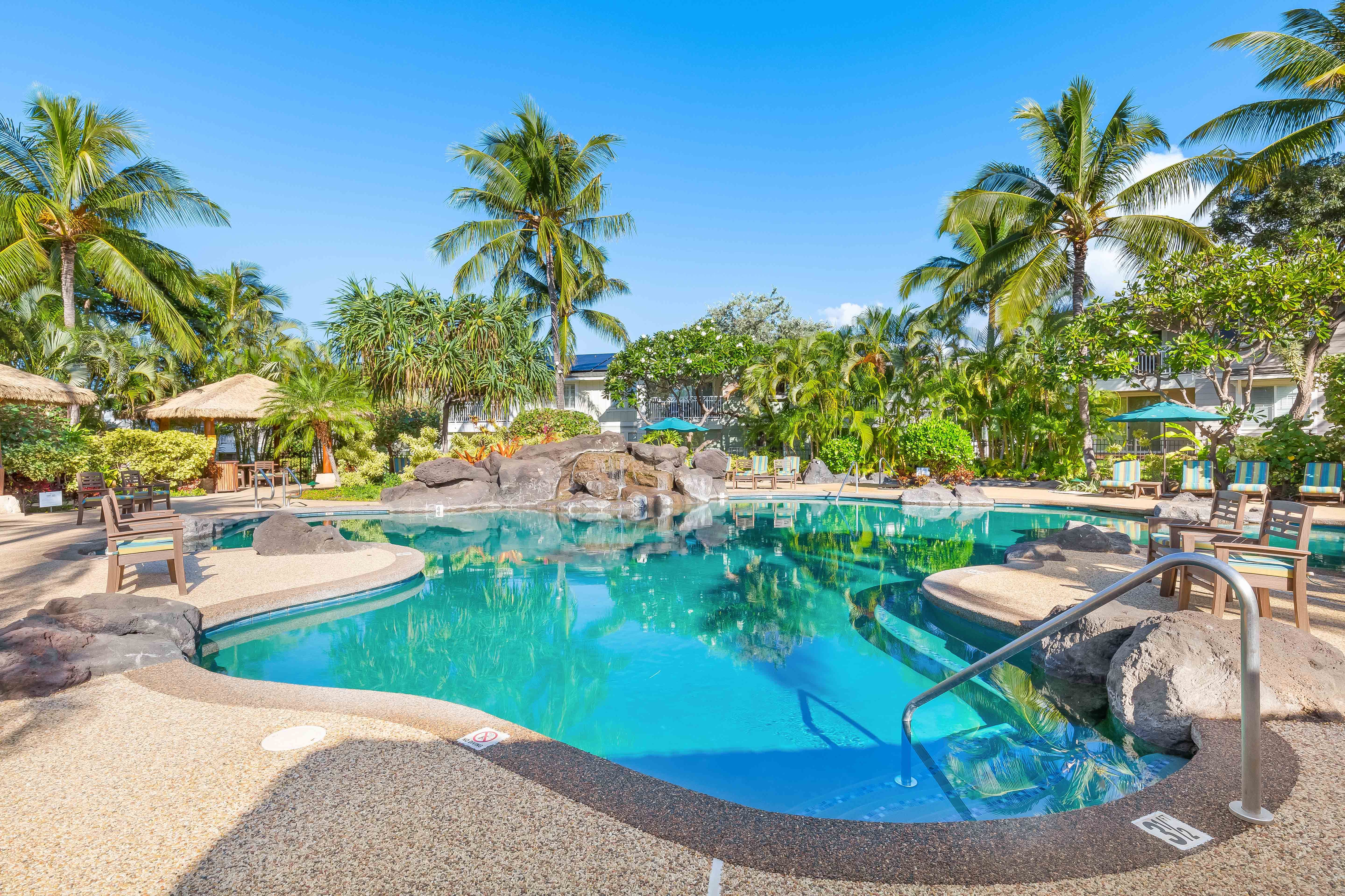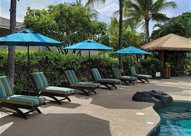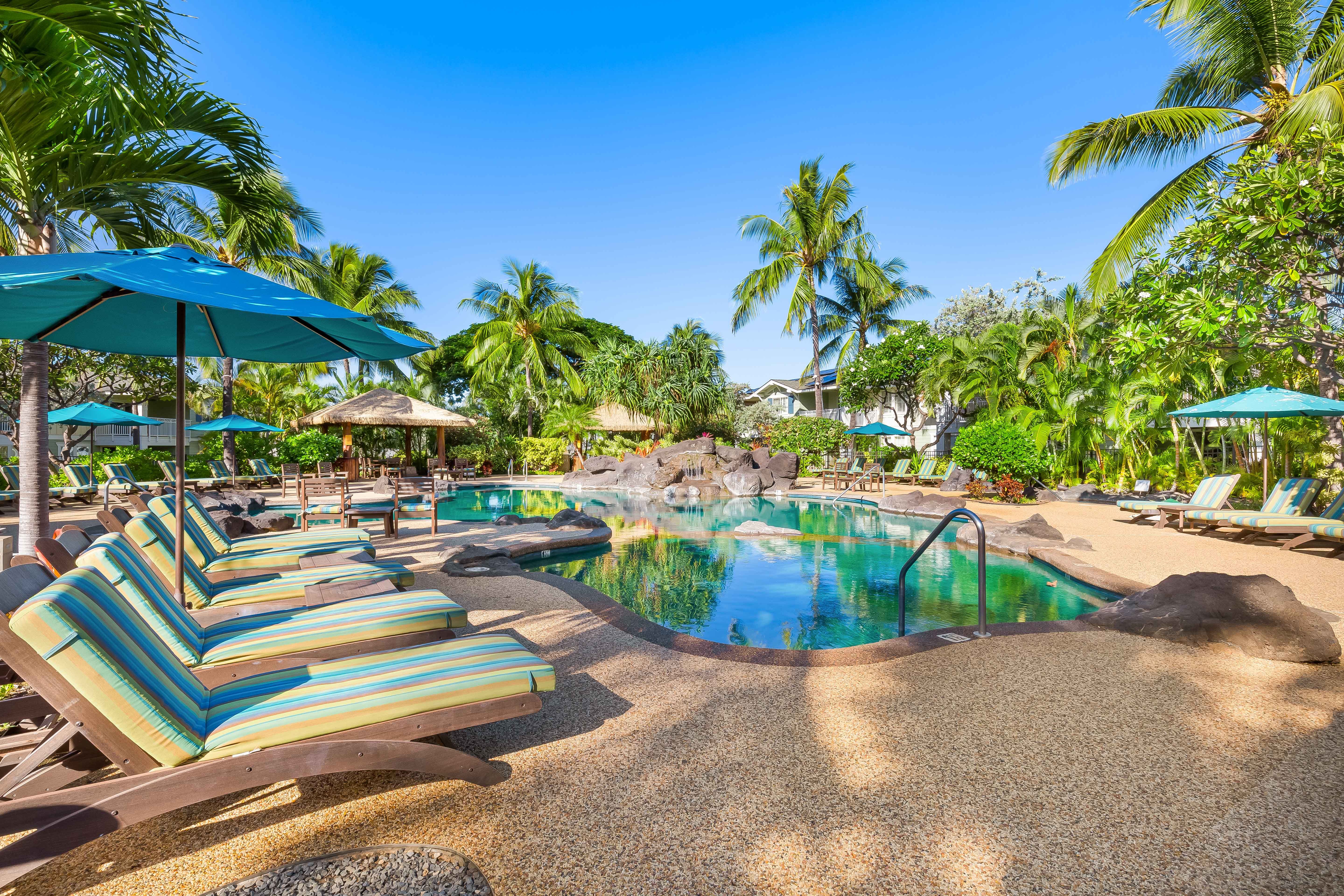 Luxurious pool with waterfall and a relaxing jacuzzi